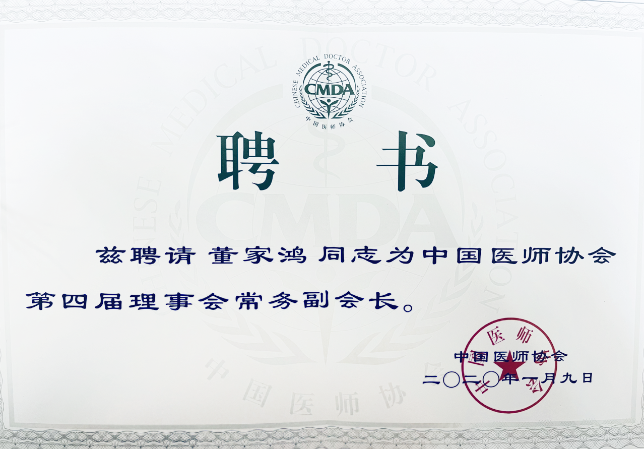2020年1月9日,董家鸿担任中国医师协会第四届理事会常务副会长。