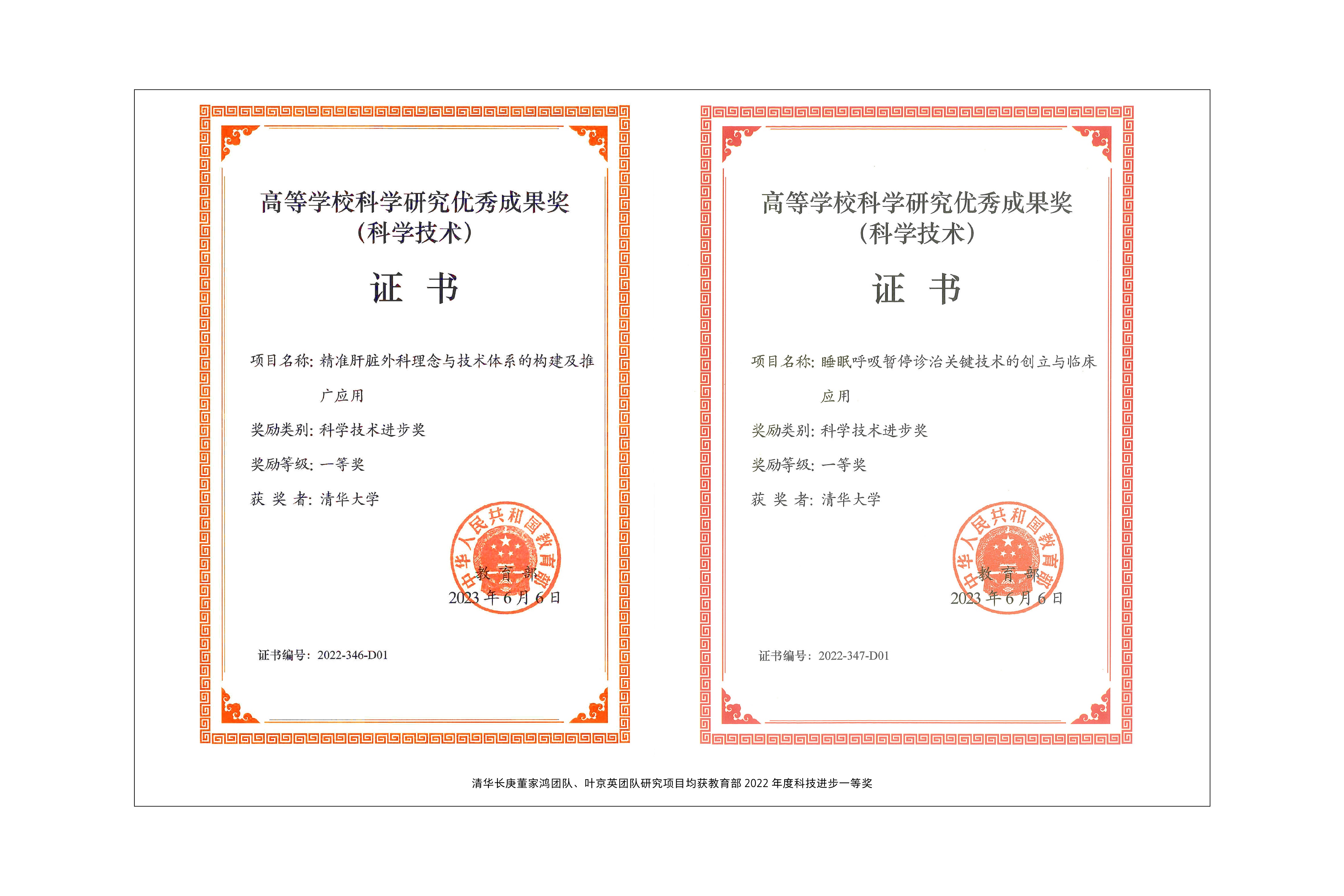 董家鸿院士团队、耳鼻咽喉头颈外科叶京英教授团队研究项目均获教育部2022年度科技进步一等奖。