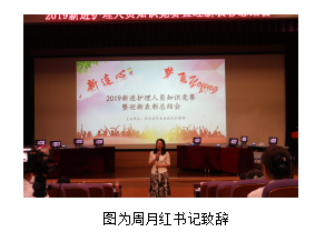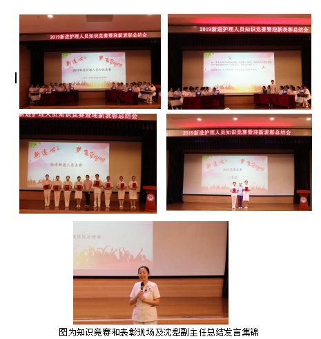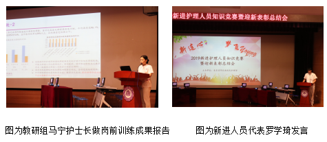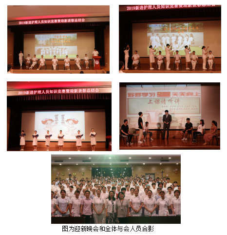 7月22日在培训接近尾声之时,为检测新进人员岗前训练成效,同时表彰岗前训练中表现突出的新进人员,护理部举办“新连心·梦飞Young 2019年护理新进人员知识竞赛暨迎新表彰总结会”。我院周月红书记、梁瀞尹顾问、护理部沈犁副主任及护理部各督导、护理长出席此次大会。
