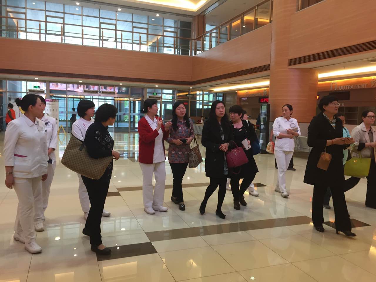 接着,参访团成员至医院现场参观,重点参观了门诊、急诊、ICU、产房、病房、体检中心等护理单元。现场与护理长不断地进行经验的分享,对我院病区责护及小组长工作职责、全责护理排班模式、病区资材管理模式,以及护理长病区管理工作手册及管理工具的运用等颇感兴趣,不停记录、拍照;夸赞护理站动态版、治疗车等设计……;并表示我院真正体现了“以患者为中心”的人性化护理服务与管理。