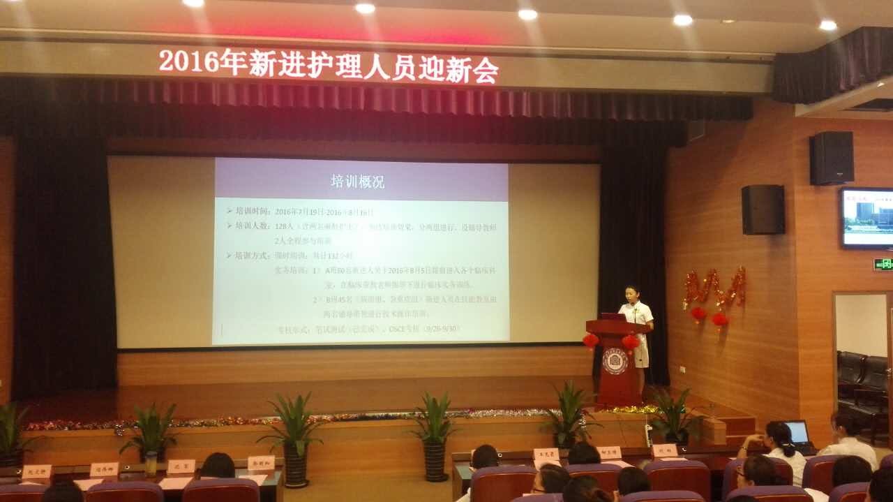 北京清华长庚医院8月17日电(护理部 王琳琳)2016年7月15日,护理部迎来了128名2016届新员工,7月19日-8月16日,这批新进人员通过了一个月的护理部岗前培训,包括共通性规章、各部门执掌、八大系统解剖及常见疾病护理、护理常见及重要技术操作、 医学英语等五大方面。为了迎接新员工的到来并总结这一个月的培训成果,护理部于8月16日下午在集会厅举办了以“新篇▪启航”为主题的新进人员迎新会。我院周月红党委书记、郭明和总执行长、科教处王克霞处长、护理部沈犁副主任、护理部各位督导及全体护理长参加了此次迎新会。