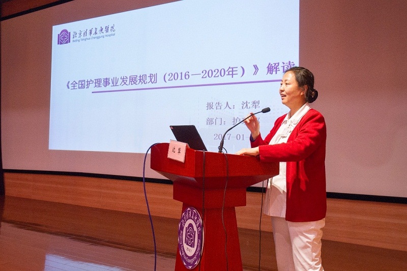 随后,由护理部六个管理委员会主席分别对2016年度工作成果和2017年度工作计划做了详细报告;同时,护理教研委员会对2015、2016年获得护理教师资格的人员颁发教师资格证书。接下来,沈副主任对“全国护理事业发展规划(2016-2020)” (以下简称“规划”)进行了解读,她阐述了“十三五”期间要重点任务是建立护士培训机制,建立护士分层级管理制度,发展专科护士队伍,以提高护理成效。主要内容有:以人民健康为中心,以社会需求为导向,促进护理事业发展。发展目标为:1.护士队伍的数量素质能力基本能适应卫生计生事业的发展和人民群众健康需求;2.优质护理服务进一步向纵深发展;3.护理管理科学化,水平明显提升;4.老年护理服务体现逐步健全。通过结合我院护理管理现状,明确指出我院现行的护理管理模式及各项工作的推展均契合“规划”的要求,将在未来工作中进一步扩展和深化。