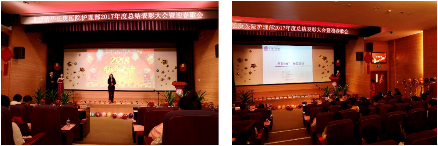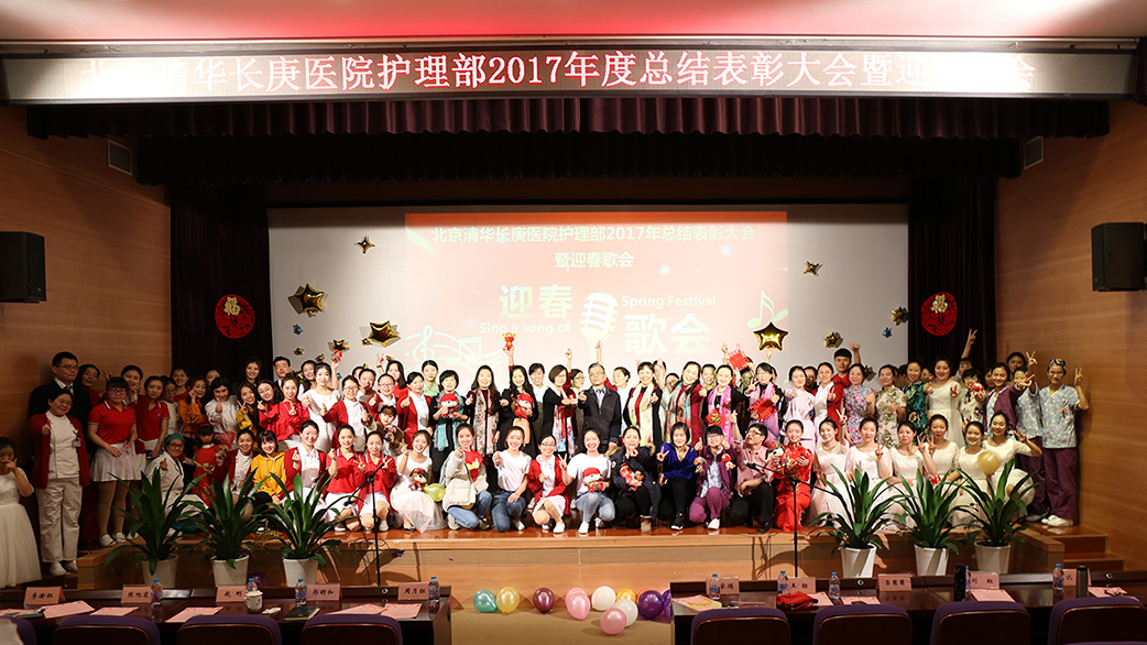 清华长庚医院2月5日电(通讯员 李文静 乔赛男)2018年2月5日下午14点,北京清华长庚医院“护理部2017年度总结表彰大会暨迎春歌会”在二号楼四层集会厅隆重举办,周月红总书记,郭明和总执行长、赵刚副总执行长、陈旭岩副书记、沈犁主任及各部门领导出席本次大会。