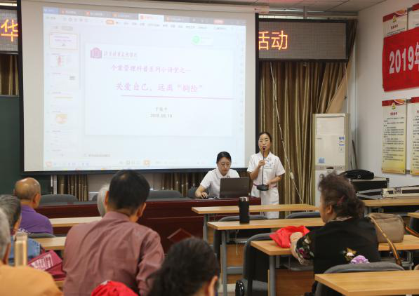 乳腺肿瘤个案管理师(于俊平)为居民带来“关爱自己,远离胸险”科普小讲堂,主要介绍了乳腺癌的发病原因,女性如何要提高防癌意识,如何用良好的生活方式对抗疾病。 肝胆胰肿瘤个案管理师(严哲)为居民带来“了解肝脏,认识肝癌”科普小讲堂,主要介绍了肝脏的基本知识;乙肝疫苗的接种方法;肝炎、肝硬化、肝癌的关系;肝癌高危人群的筛查与监测;科学抗癌的生活方式等。外周血管疾病个案管理师(于晓华)为居民带来“别让身体里的“血豆腐”威胁到我们的生命”科普小讲堂,主要介绍了什么是静脉血栓,发病机制、危险因素、常见症状、治疗方案、相关注意事项,并就如何预防静脉血栓等方面进行了宣教。