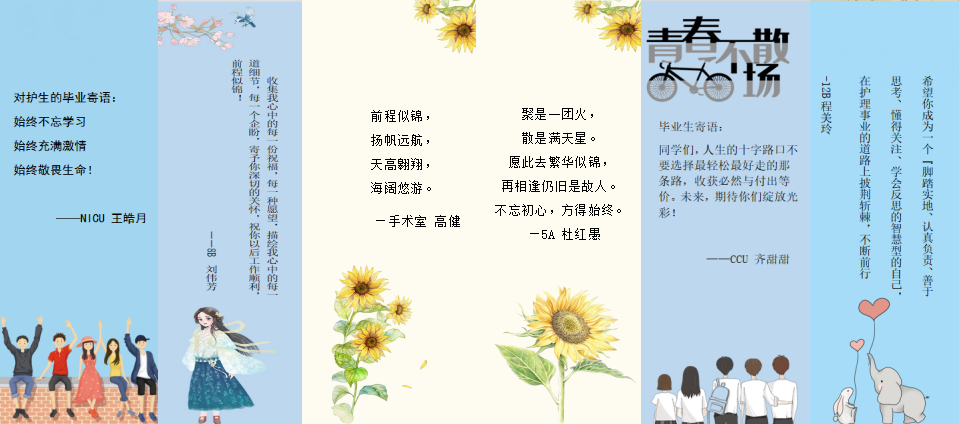 毕业需要仪式感,人生更要有使命感。正如清华大学校长邱勇所说:“也许这场‘云上’毕业典礼不够完美,但它所承载的意义与希望,不仅没有削弱,反而更加凸显。”在此,也愿我们即将踏入工作岗位的准护理同仁们能够:心中有阳光,在哪里存在,就在哪里绽放!