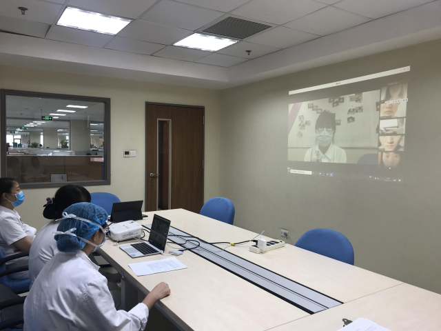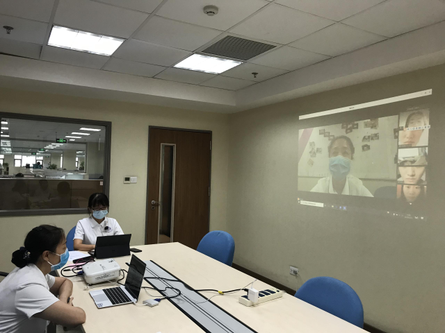 “云结业”典礼在护理部教研管理委员会吕茵茵主席的主持下,由彼此的问候声拉开序幕。教学部副部长宋春梅老师首先致词,她对护理部带教工作表示肯定、对学生们顺利完成实习表示祝贺、对各实习院校对本院的认可及信任表示感谢,尤其对在北京疫情反复时能够严格配合防控要求,并坚持完成实习任务的石家庄协和医学院的师生表示肯定和感动之情。