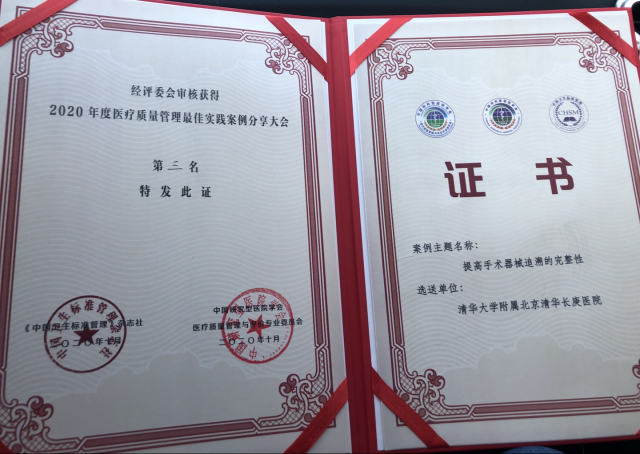 中国研究型医院学会于2020年年初发起了“优秀医疗质量管理与评价案例”评选活动。全国共征集500余份医院质量管理实践案例(包含QCC、RCA、PDCA、专案改善等多种形式)。我院护理部选派六个案例参评并全部入围。入围后护理部再次选拔,推选出妇儿科组、手术供应科组两个案例参加本次大会分享。10月17日由北京清华长庚医院护理部副主任赵文静带队,两个案例在大会分享中获得第二名和第三名。