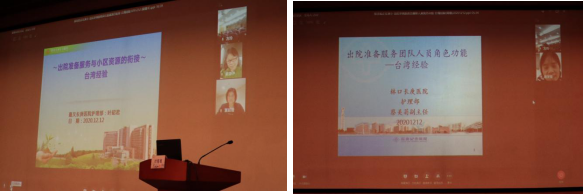 疫情阻挡不了海峡两岸的距离和知识的传递。本次论坛特邀台湾嘉义长庚医院居家护理专家叶昭君督导和林口长庚医院护理部蔡美菊副主任授课,她们以视讯形式在线为我们带来台湾“出院准备服务团队与社区资源的衔接”及“出院准备服务团队中各类人员的角色与功能”为主题的经验分享。叶昭君老师围绕出院准备服务-转介护理服务-居家护理服务-长照护理服务-安宁护理服务等方面,详细为我们分享了台湾经验。蔡美菊老师则详细介绍了出院准备团队成员组成、成员职责,并结合案例对各成员在团队中协作配合进行具体阐述。