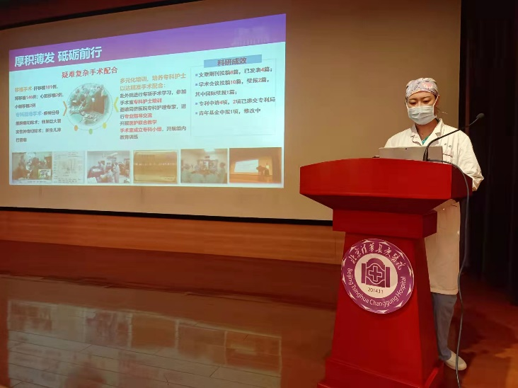 2021年先进集体手术室护理长柯胜男向大家介绍了手术室在手术量呈不断增长的同时如何保证手术配合能按质按量完成的工作方法。通过指派专科护士外出培训、邀请护理专家来院教学、医护联合教学等方法,以达到精准手术配合,提升工作效率及科研能力的目的。