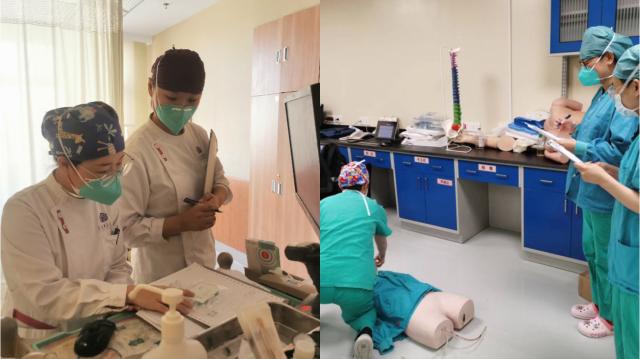 随着考试铃声响起,所有评委及道具准备妥当,在保障临床工作的前提下,53名来自各个护理单元的佼佼者依序、分时段参赛。经过了预赛环节的锤炼,加上临床工作之余的疯狂练习, 将“台上一分钟,台下十年功”展现的淋漓尽致,只有经过多次反复训练,才能在赛场上及面对生命时沉着冷静、游刃有余。