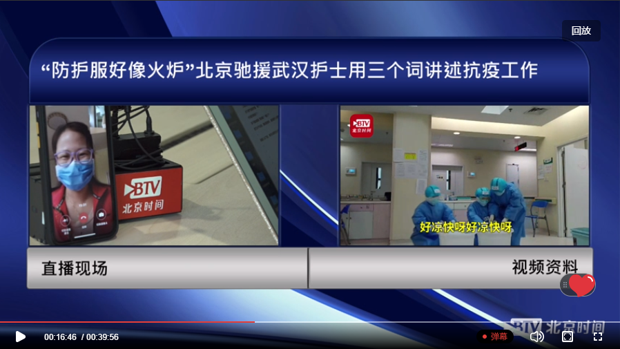 北京时间直播采访我院支援武汉医疗队护士刘淑珍:“防护服好...