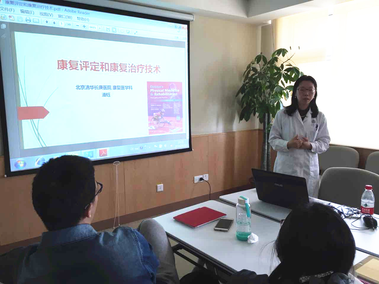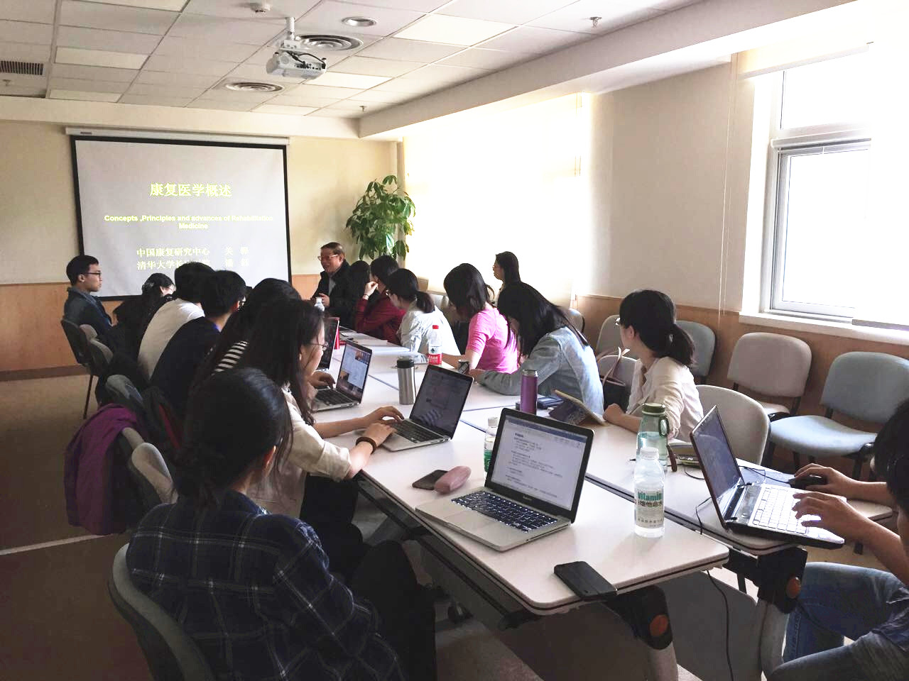 清华长庚4月26日电 (通讯员 苗乐 宋春梅)2016年4月23日,由我院承接的《物理医学与康复医学》正式开讲,该门课程负责人为康复医学科主任潘钰。首讲内容包括康复医学概论、康复评定和康复治疗技术,分别由中国康复研究中心关骅、我院康复医学科主任潘钰讲授,清华大学首届医学实验班的16位同学参加了本次课程。