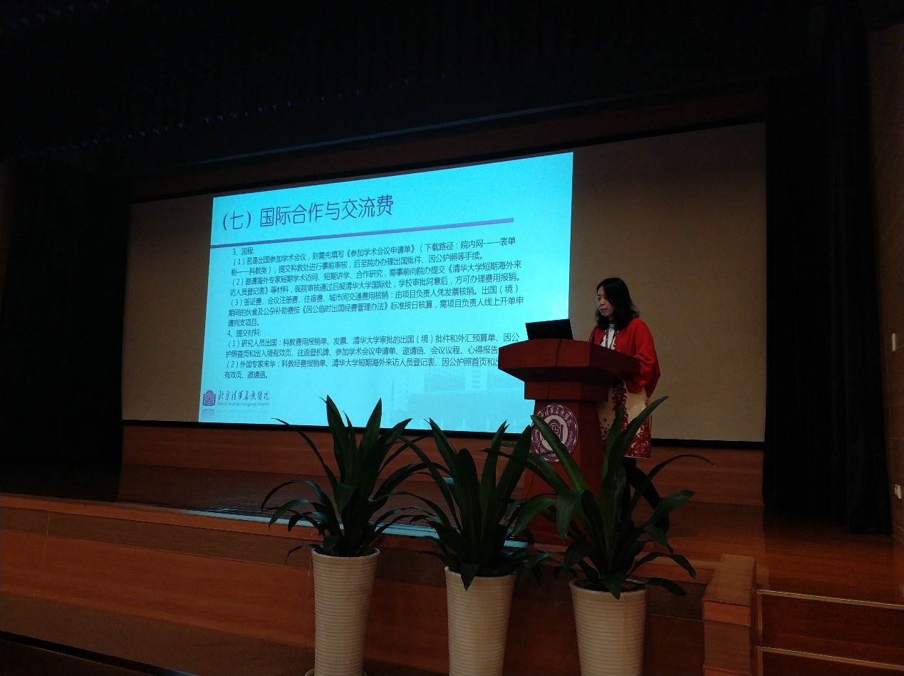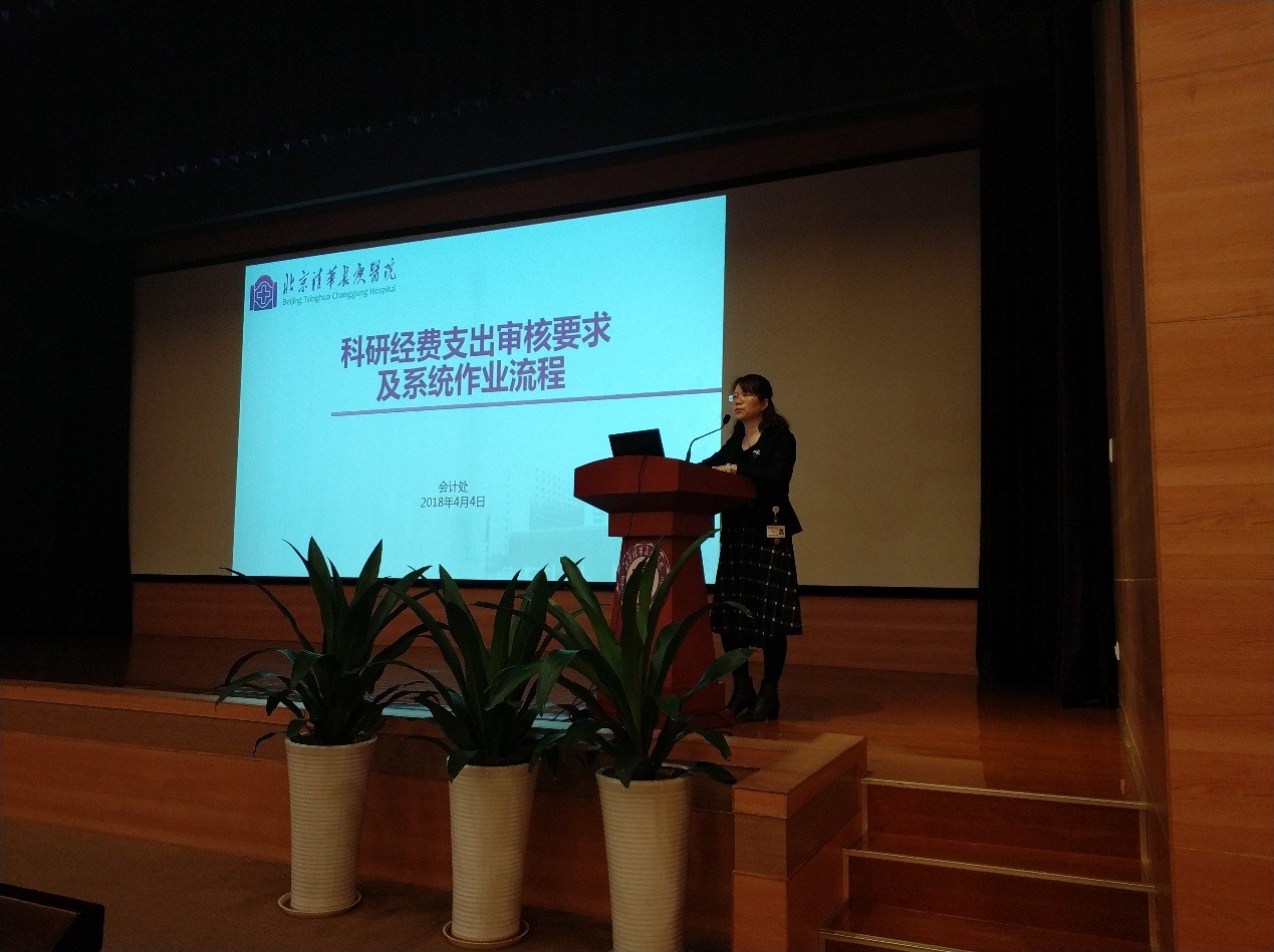 (清华长庚医院4月8日电 通讯员 杨思凡)4月4日,我院三部门联动组织召开科研经费使用培训会,会计处、采购处、科教处相应负责人参加,为我院科研项目负责人及联系人、行政助理进行了科研经费使用规范的培训,王克霞总执行长助理主持培训会。
