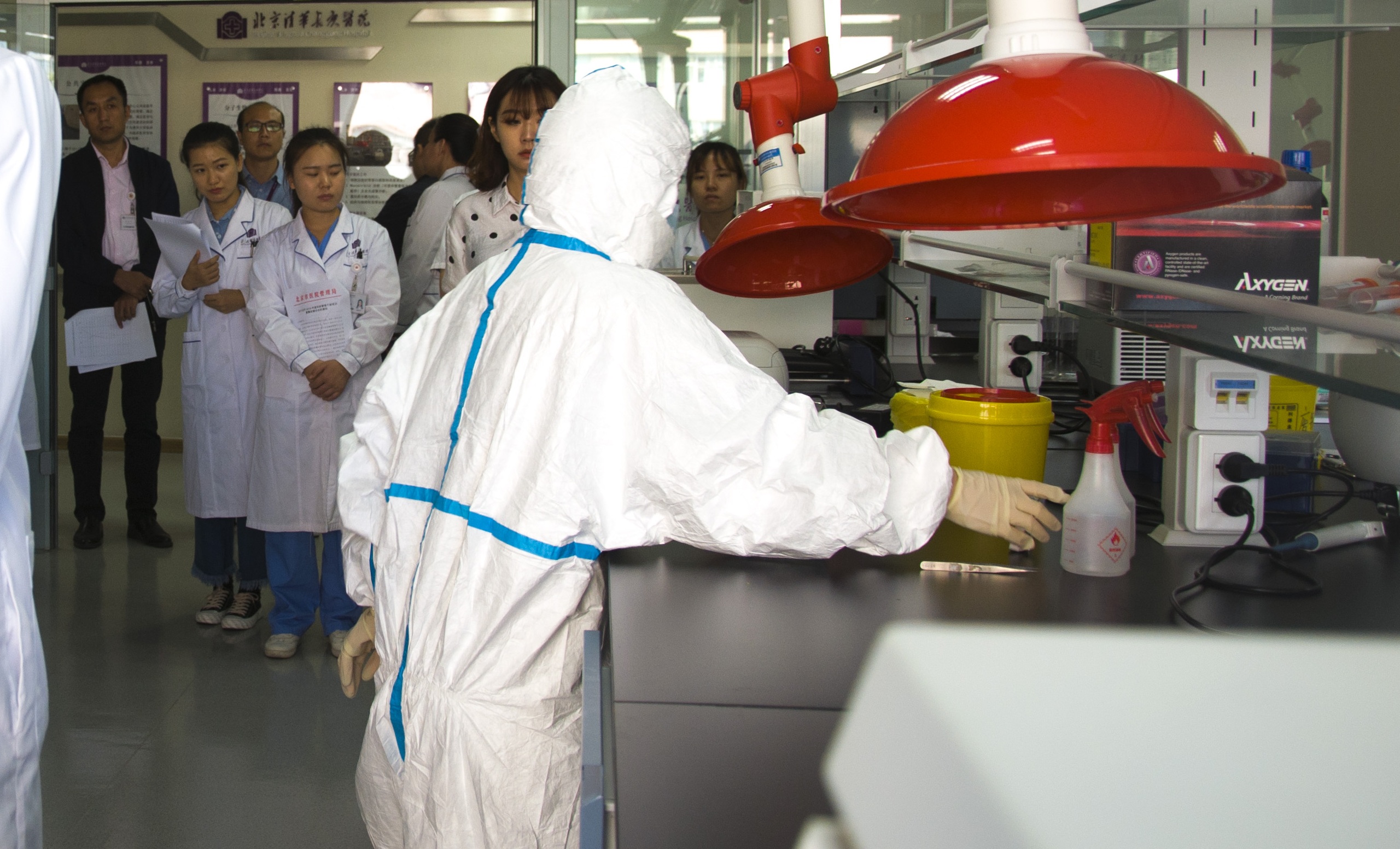 北京清华长庚医院9月27日电(科教处 司雪峰)为加强我院实验室生物安全管理,提高生物安全应急处置能力,进一步提升实验室工作人员的专业技术素养和生物安全防护水平,北京清华长庚医院于2018年9月26日开展了实验室生物安全应急演练。医院副院长兼实验室生物安全委员会主席徐沪济、医院党委副书记兼科教处处长王克霞共同担任本次演练总指挥,检验科主任赵秀英担任副总指挥,医院科教处、检验科、总务处、院感办、保卫处人员参加演练,医院各实验室选派人员观摩了演练。