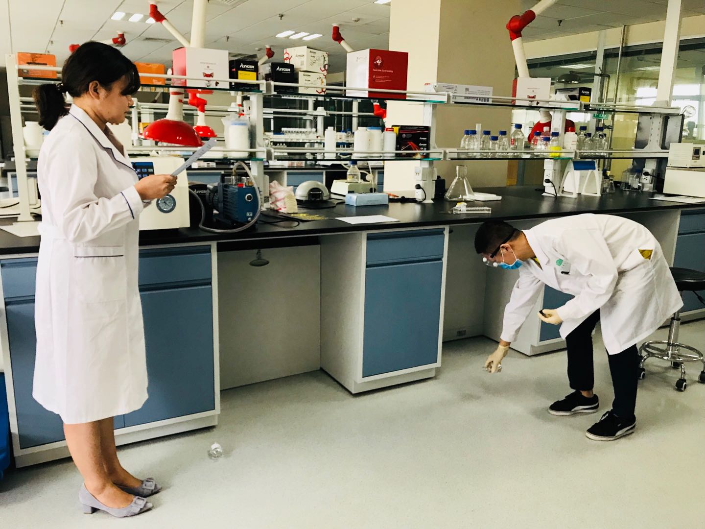 本次演练以实验室发生危险化学品泄露为模拟背景,各部门人员配合,对危险化学品泄露事件发生后人员清洁、环境处置、信息报告、废物处理等内容进行有序操作与演示,达到了预期目的。