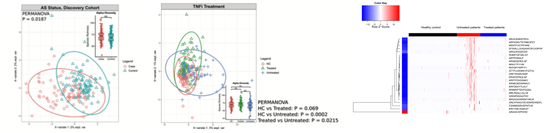 近年来一系列研究表明肠道微生物紊乱及宿主免疫功能的交互作用可能参与了强直性脊柱炎的发病,但其中的机制尚未完全清楚。 徐沪济教授课题组主导的本项研究主要贡献包括:1)强直性脊柱炎患者的肠道菌群产生大量可以被HLA-B27提呈的特异性表位肽,第一次揭示肠道菌群的表位肽可能参与了HLA-B27相关疾病的免疫致病机理;2)强直性脊柱炎相关的菌群改变及代谢途径的紊乱会促进肠道内炎症反应的发生,证实了肠道菌群的直接致病作用;3)TNF抑制剂的治疗使强直性脊柱炎患者的肠道菌群紊乱得到很大程度上的改善,提示TNF抑制剂新的作用机制。