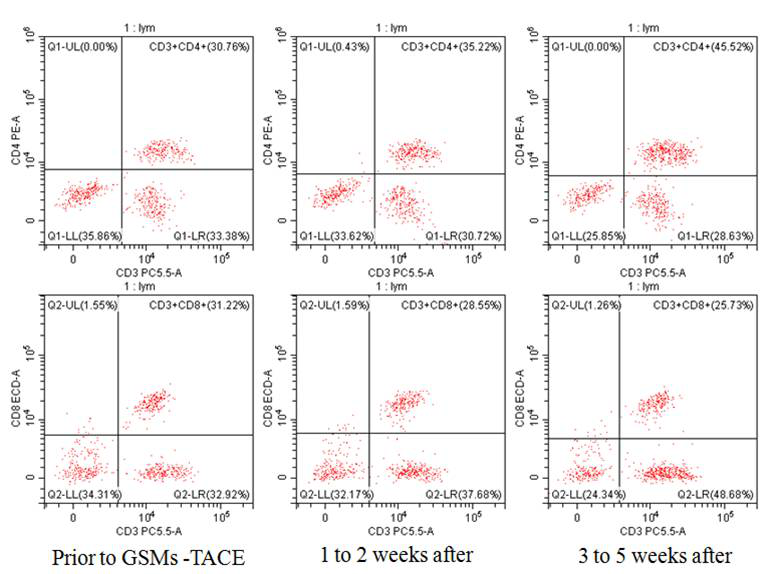 肝癌患者mTACE后外周血中Treg和CD4+T、CD8+T细胞变化