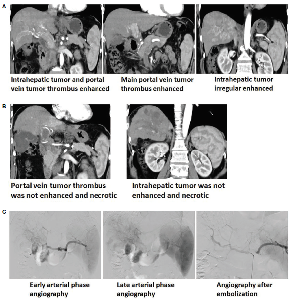肝癌患者mTACE术前术后增强CT及血管造影图像