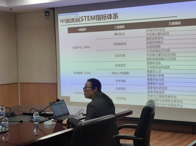 学科建设是医院长期战略性的目标,科研创新是医院学科建设的重要推动力。STEM(中国医院科技量值)排名不仅为各个学科找准定位提供了借鉴,也有助于指引各学科在后续规划和建设工作中有的放矢,发挥优势,弥补不足,推动学科持续发展。安新颖从“科研创新评价”出发,围绕STEM,做了题为“新时期医学科技多元价值评价体系的思考”主题讲座,从STEM的产生背景、概念与内涵、评价导向、评价重点、评价流程、应用成效等方面展开分享。互动环节,安新颖就各位学科带头人所关心的问题进行了解答。