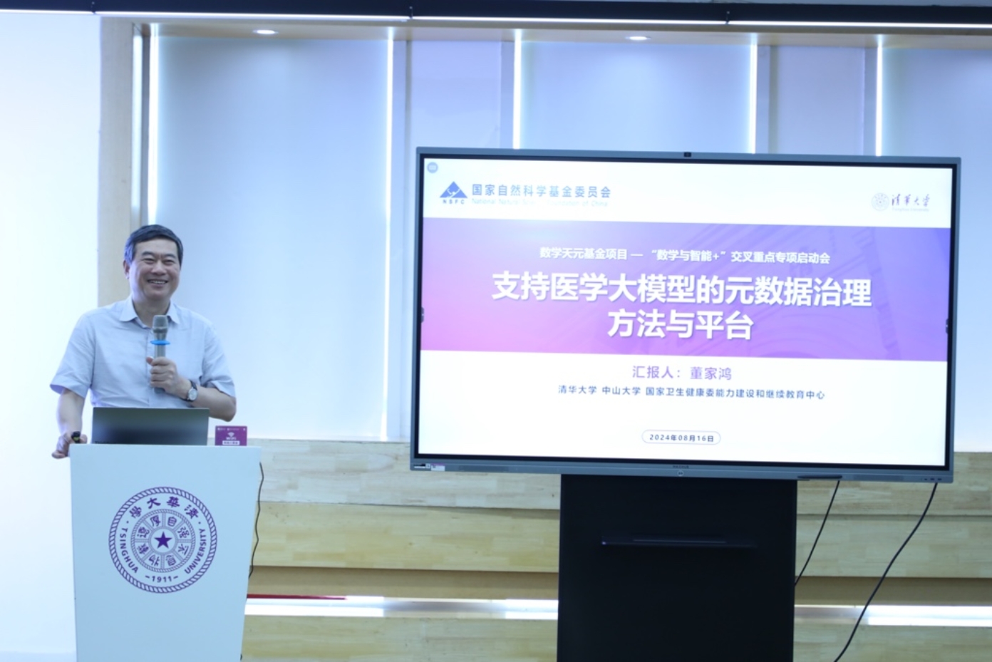 北京清华长庚医院9月1日电 2024年8月20日,清华大学临床医学院举行国家自然科学基金-天元基金重点项目“支持医学大模型的元数据治理方法与平台”启动会。该项目由清华大学联合中山大学、国家卫健委能力建设和继续教育中心,依托国家专病数据库、45家知名医院开展课题研究和示范应用,推进国家健康医疗大数据创新应用示范中心支撑项目转化落地。中国科学院院士徐宗本、中国工程院院士董家鸿、国家卫生健康委能力建设和继续教育中心主任杨爱平、清华大学科研院副院长孟祥利、中山大学数据科学与计算机学院教授赖剑煌等多学科领域专家齐聚一堂,深入研讨项目任务,严谨论证工作方案,为医学大模型领域再立新标杆建言献策。
