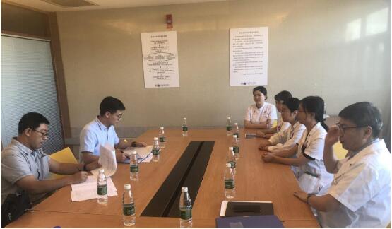 首次会议由检查组组长刘小保主持。董家鸿对检查组的莅临表示热烈欢迎并介绍了医院的现状,全院上下十分重视药物临床试验资格认定工作,珍惜专家评审现场指导的机会。周月红表示,我院作为清华大学附属医院,科学研究是非常重要的发展环节,希望借此机会以评促建,通过专家的实地考察和指导将我院临床试验机构建立得更加完善。