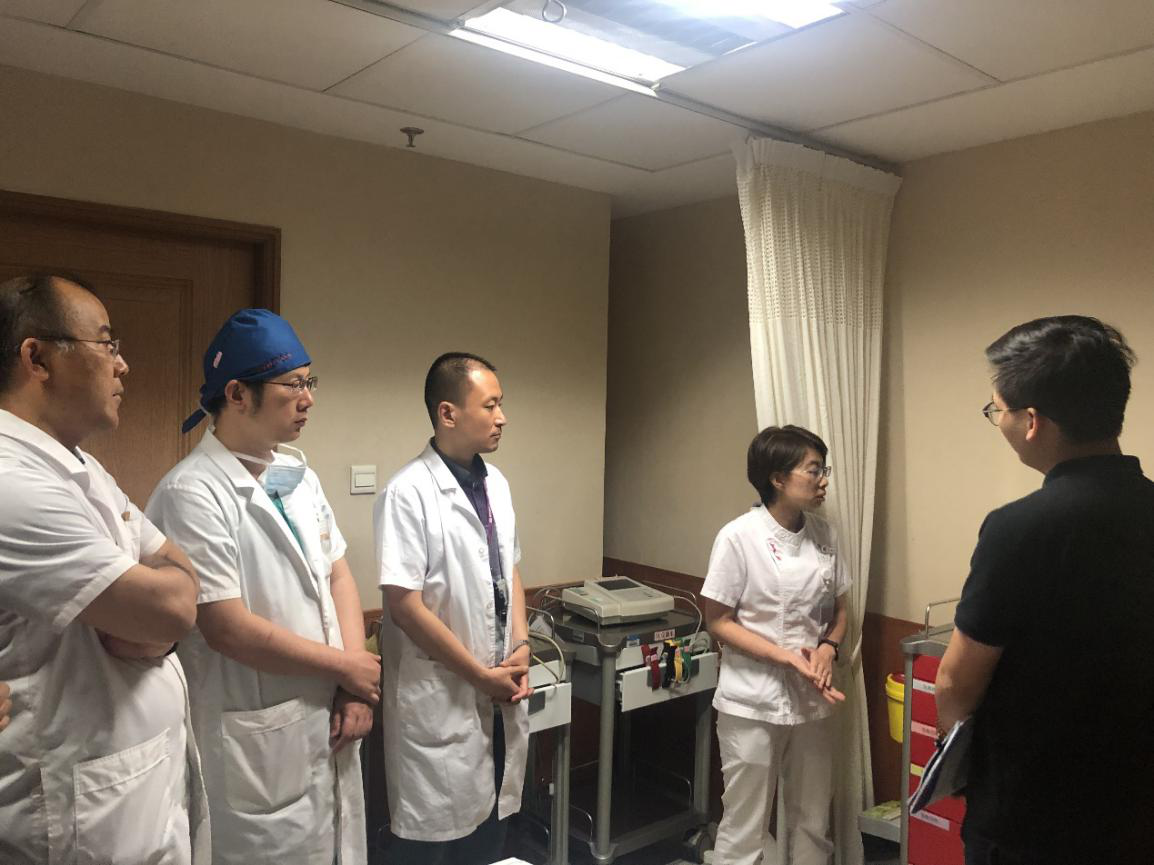 随后检查组分两组至各申报科室进行全面现场检查,对于科室人员资质、GCP与试验技术知识掌握、科室制度建设、承担临床试验相应设施以及抢救设备条件等进行了详细检查。