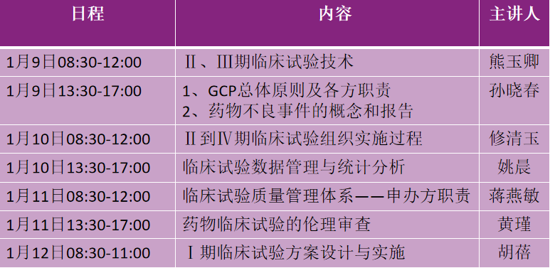 来自不同领域的具有丰富临床试验经验的7位资深专家分别从药政法规、I-III期临床试验设计和实施的关键要素、质量管理体系和各方职责、不良反应报告体系、临床试验统计方法、伦理审查原则等各个方面进行了培训。专家们以饱满的热情,风趣幽默的讲课方式对各个主题进行了由浅入深的细致讲解。会后参加培训人员也对此次培训做出了高度评价和反馈:“不出院门就能听到国家级专家授课,解决了我们在临床试验中遇到的难题”。
