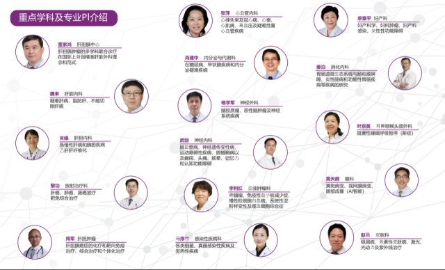 北京清华长庚医院临床研究者队伍,以中国工程院院士、国际知名肝胆外科专家董家鸿领衔,世界著名眼科专家、新加坡国家科学院院士、美国国家医学科学院外籍院士黄天荫为代表,同时汇聚肝胆内科、肝胆肿瘤科、心血管内科、内分泌与代谢科、神经内外科、血液肿瘤科、感染性疾病科、妇产科、消化内科、耳鼻咽喉头颈外科、眼科、皮肤科等众多专科行业知名专家,且多位专家获得何梁何利奖、林巧稚杯等行业最高荣誉。