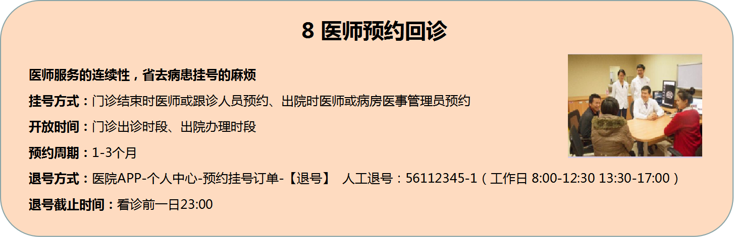 9. 本院保留对预约者的审查权。请您于正规渠道预约挂号,理性就医,谨防号贩子!对于恶意预约挂号者(随意预约、贩卖专家号),本院将取消其预约资格。