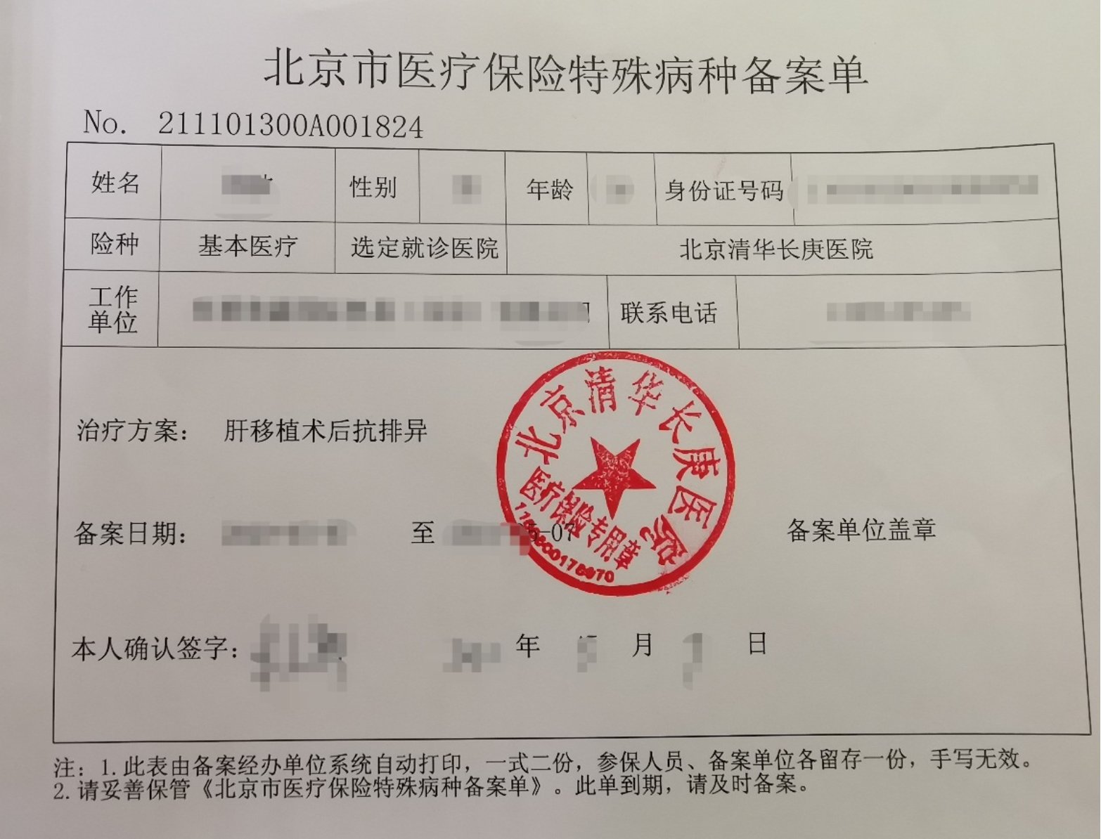 (图为我院首例“肝移植术后抗排异”备案)