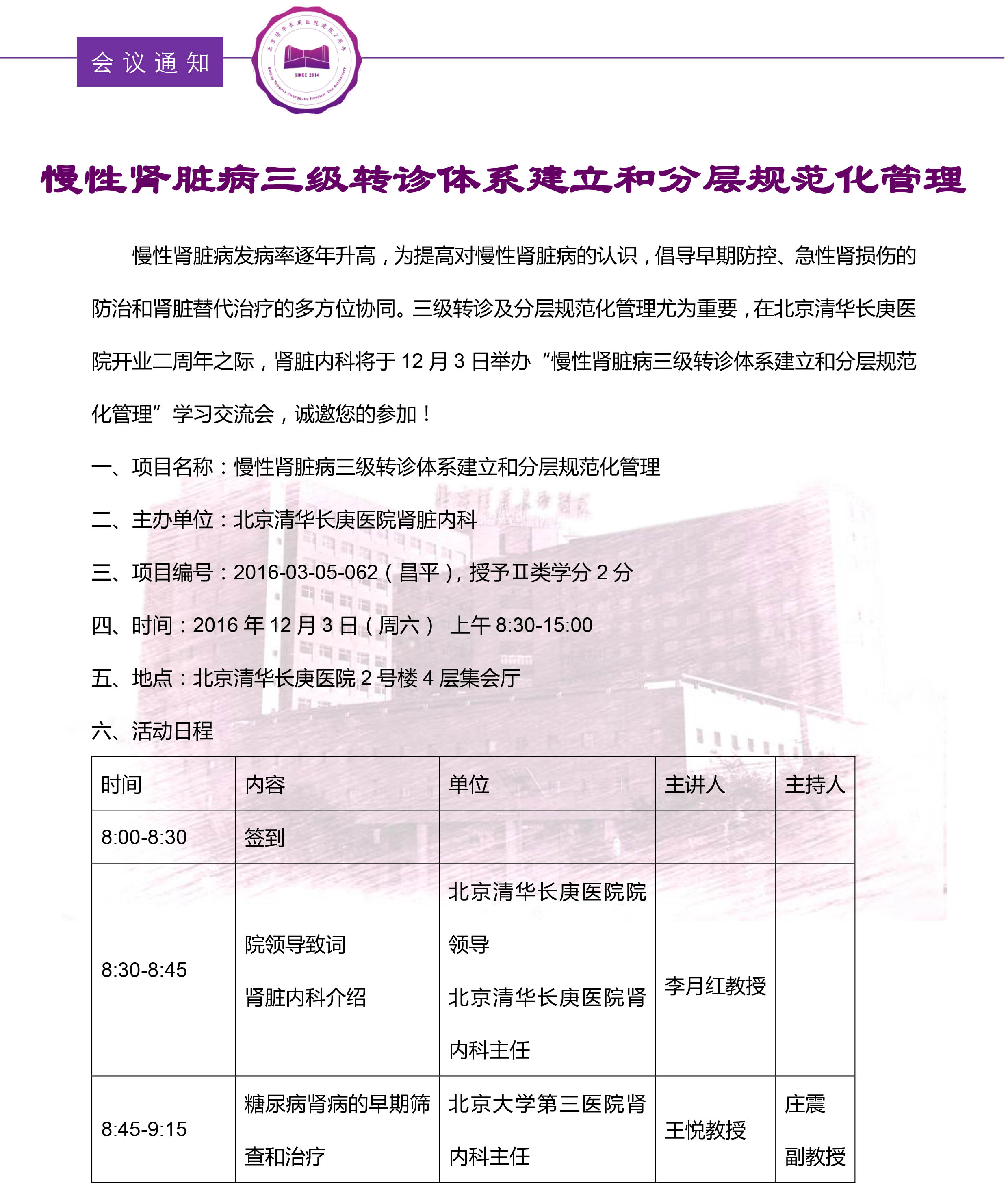 慢性肾脏病三级转诊体系建立和分层规范化管理邀请函