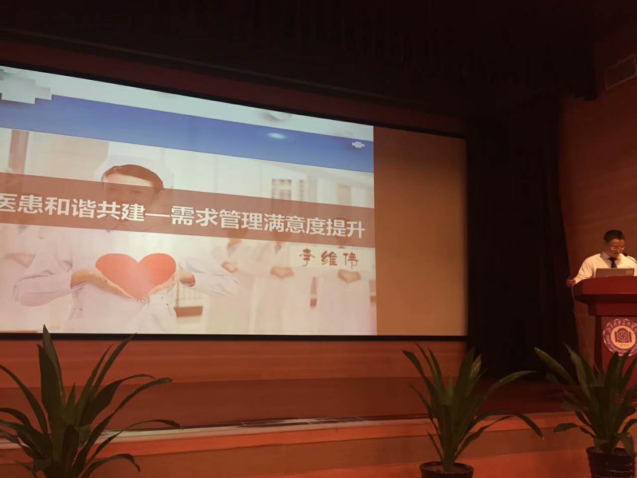 (图为李维伟老师讲授 “医患和谐共建之需求管理和满意度提升”)