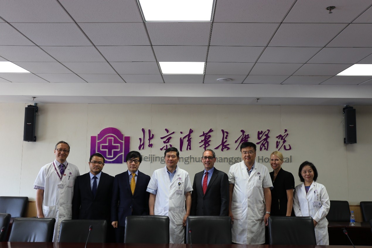 清华长庚医院6月21日电(医政组 张璠 摄影 陈旭东)2017年6月21日上午,贝斯以色列女执事医疗中心(Beth Israel Deaconess Medical Center,以下简称BIDMC)首席执行官Kevin Tabb、最高管理董事会成员李嘉强、首席拓展官Kristine C. Laping等一行四人来访我院。我院董家鸿院长、王劲副院长、内科部张萍副部长、普外科罗斌主任出席接待。