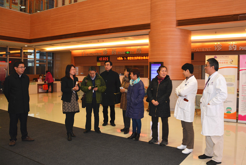 李利红处长一行首先来到医疗大楼,深入了解了我院门诊药房、抽血柜台的工作流程、参观了门诊诊间、住院服务中心、以及康复医学科等地,实地了解院内空间设置及患者诊疗动线。而后参访人员以内科、外科、检验科三组分别参观了相应的病房、科室,了解临床教学情况。