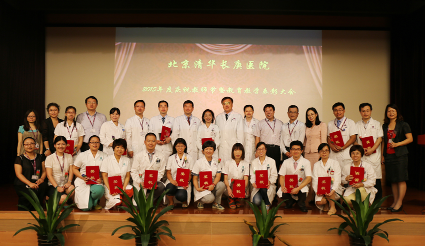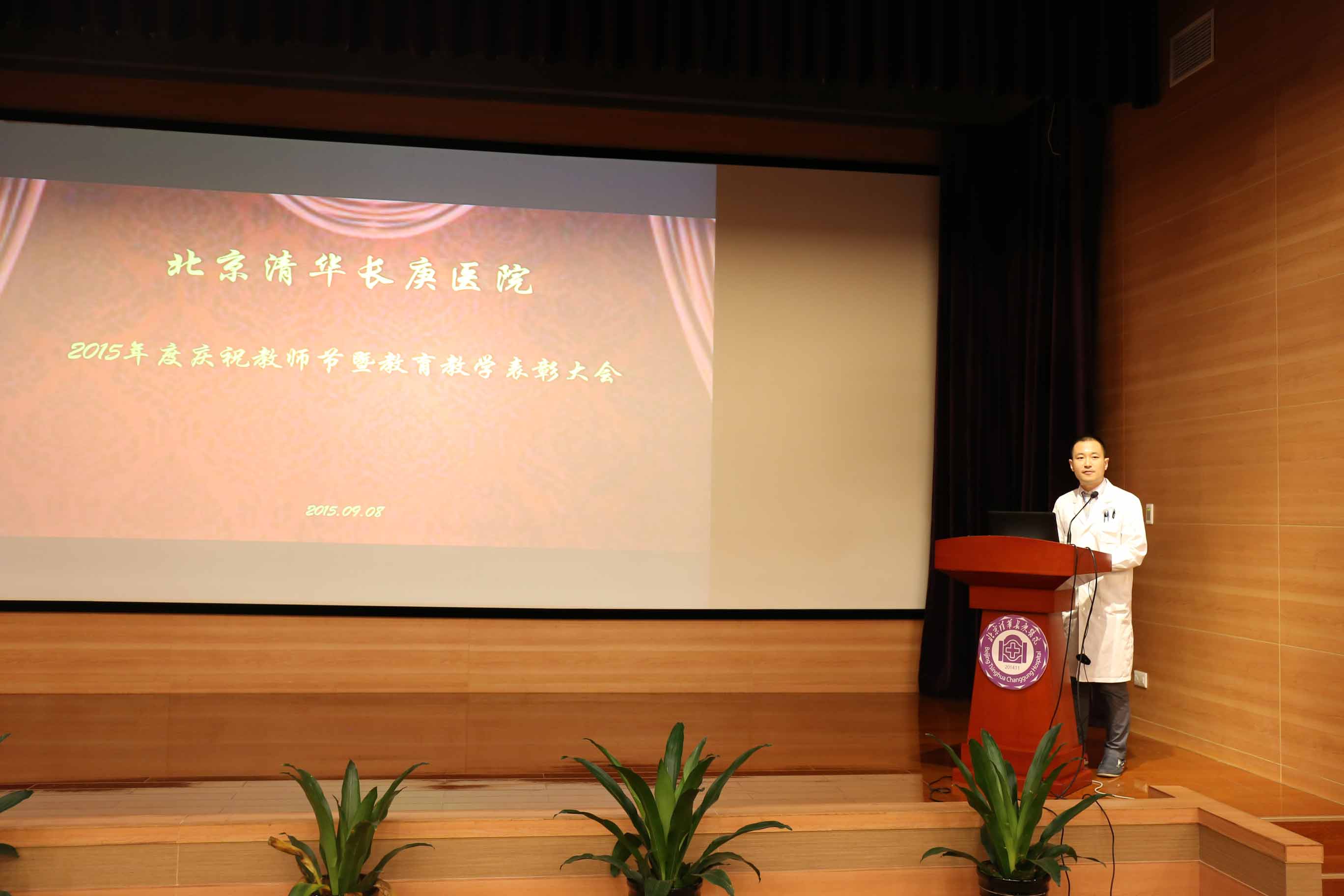 清华长庚医院9月9日电(科教处 杨思凡)2015年9月8日,在我院隆重召开2015年度庆祝教师节暨教育教学表彰大会,也是我院首次召开该项专题大会,共同庆祝第三十一个教师节,表彰我院在教育教学工作中的先进代表和事迹。全体院领导、各部科主任、教学专责主治医师、Attending医师代表、住院医师代表、护理代表、行政主管等人员参加大会。