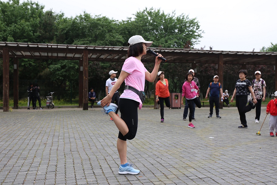 周六清晨,凉爽的微风中全员集合完毕,医院党委副书记、科教处处长王克霞为参加健步走的伙伴们儿加油鼓劲儿,并带领大家做出发前热身活动,倡导全员运动、健康生活。