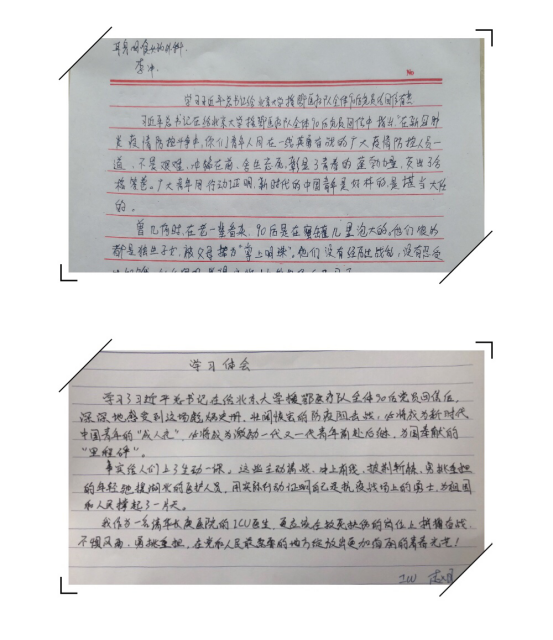 北京清华长庚医院4月9日电(通讯员 朱留宝)3月15日,中共中央总书记、国家主席、中央军委主席习近平给北京大学援鄂医疗队全体“90后”党员回信,赞扬并勉励奋战在新冠肺炎抗疫一线的青年人,不惧风雨、勇挑重担,让青春在党和人民最需要的地方绽放绚丽之花。清华大学附属北京清华长庚医院组织全体住院医师与研究生学习总书记回信的精神,共136人完成学习并提交感言心得,总书记充满温情和斗志的话语在住院医师与研究生中引起了广泛共鸣,激发了青年医者们的时代责任感,誓言不负青春韶光。