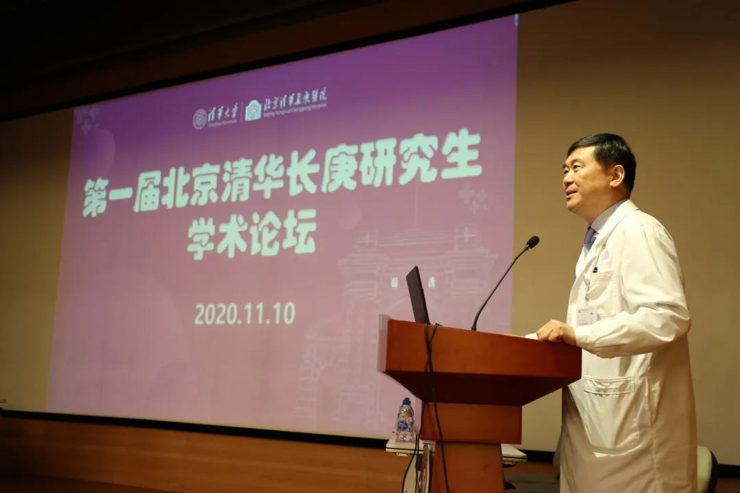 董家鸿在致辞中指出,国务院推出了创新研究生教育、创新医学教育的重要策略方针,对于推动研究生教育高质量发展具有指导意义。随后,他对研究生提出几点希冀:作为清华大学的学生,应发扬清华大学“自强不息,厚德载物”的精神,努力成长为具有高度人文情怀的卓越医生;应有济世情怀和良医操守,努力学习系统的临床知识技能;应在实践中不断成长,追求“慈悲、博学、专注、慎独”的清华医学人气质;应依据国家重大需求、社会需求、人民的健康需求以及国际科技前沿发展规划选题,为国家发展创造价值。
