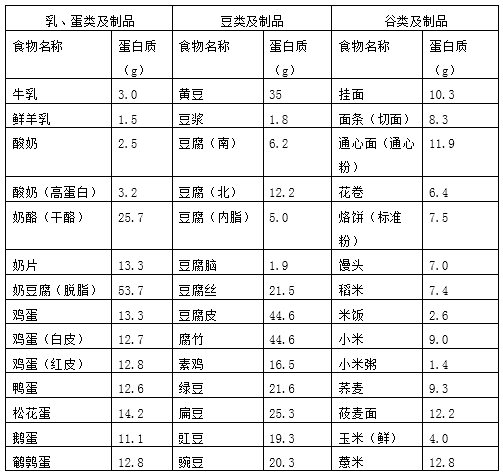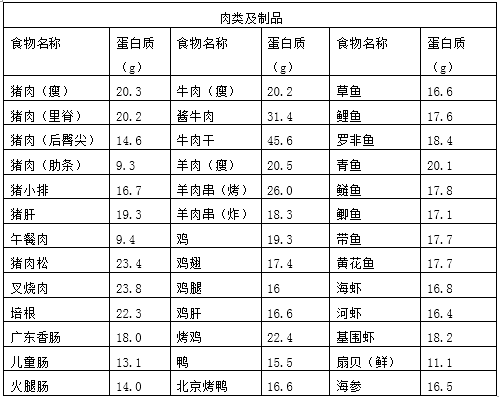 常见食物中蛋白质含量一览表(以每100g可食部计)