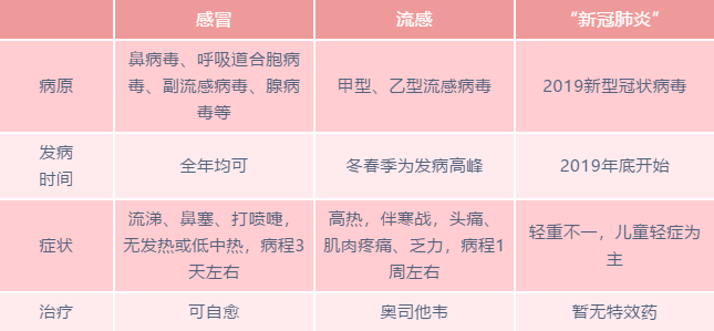 感冒、流感、“新冠肺炎”的区别
