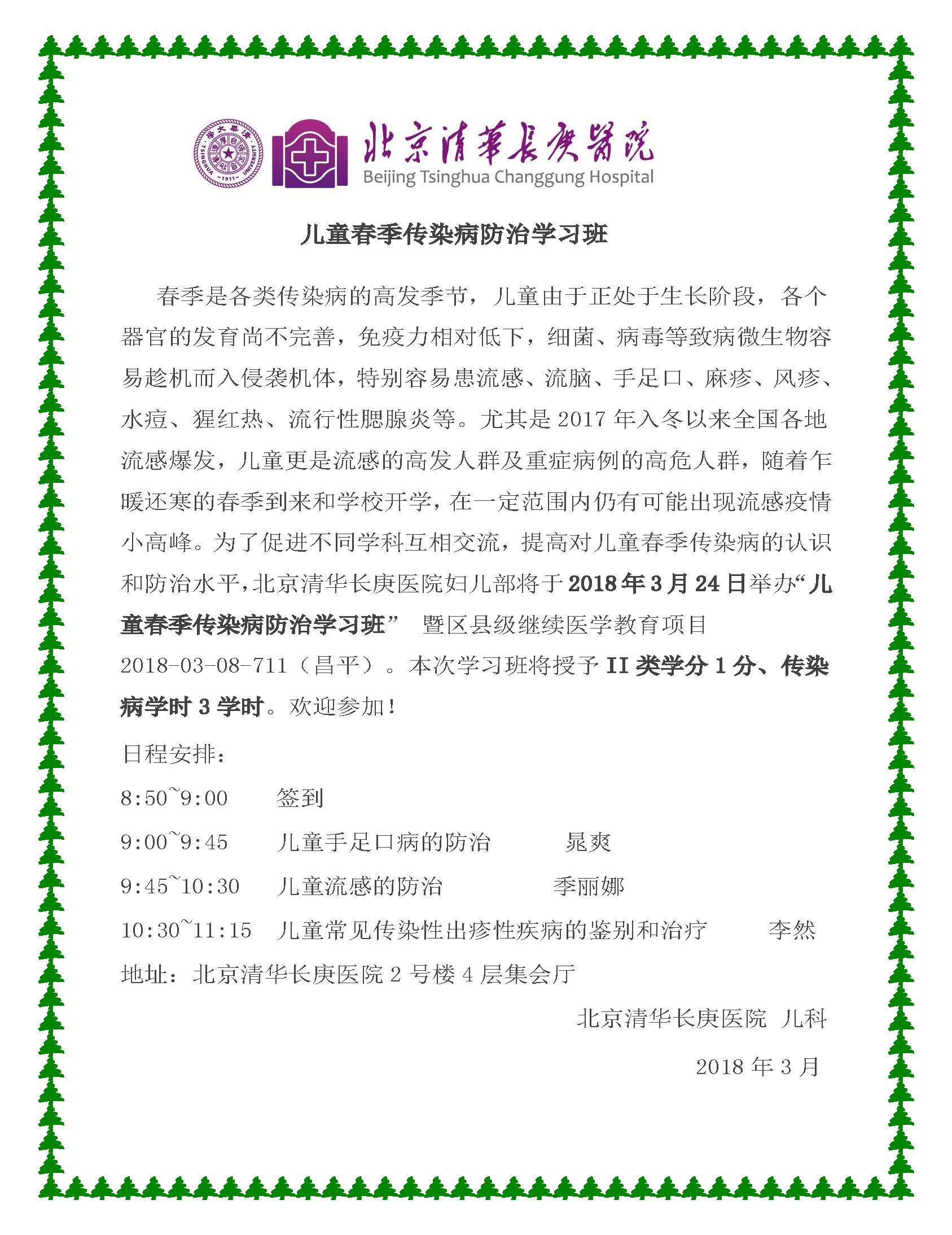 活动预告:3月24日北京清华长庚医院儿科举办“儿童春季传染病防治学习班”