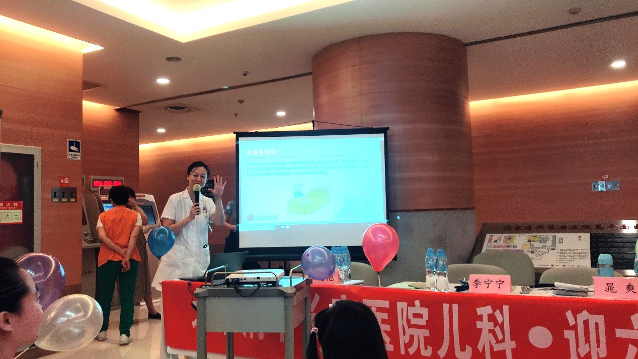 在这个到处充满孩子欢声笑语的日子里,儿科的医生护士阿姨还给小朋友们准备了小节目哟~,现场播放了录制了好好吃饭歌,送上清华长庚医院儿科对孩子们的祝福:宝宝们要好好吃饭,快快健康长大呀!