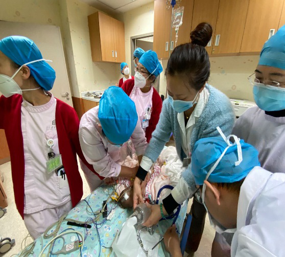 北京清华长庚医院儿科在发展中,逐渐提升了对新生儿外科疾病的早期识别水平,如新生儿消化道穿孔,新生儿肠套叠等疾病,一旦发现,迅速完成转诊工作,确保新生儿能够及时转危为安。2020年10月,儿科NICU医护人员联合胸外科完成了一例隐匿气胸的NRDS的新生儿救治。患者救治过程从产房的窒息复苏开始,到气管插管灌注肺表面活性物质,到发现气胸,请胸外科做胸腔闭式引流,用时仅两个小时,最终宝宝在NICU医护人员的精心医治和管理下,得以顺利出院。10月中下旬,儿科门急诊医护人员抢救了一例因窒息导致心跳呼吸骤停的小婴儿,经全力救治,患儿恢复了自主心律。在不抛弃不放弃精神的鼓舞下,儿科医护通过挽救更多孩子们的生命,让每一朵生命的小花能得以绽放。