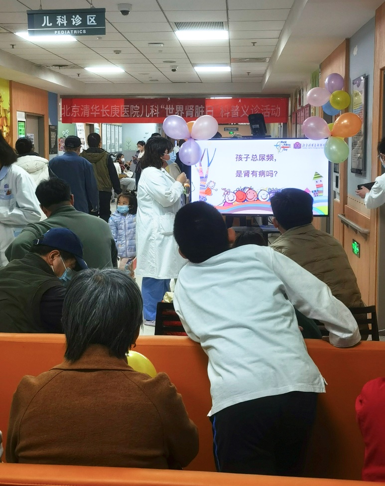 北京清华长庚医院3月15日电(通讯员 韩思雨)2024年3月14日是第十九个“世界肾脏日”,主题为:人人享有肾脏健康——促进医疗平等,优化用药实践。当天上午,我院儿科门诊开展“世界遗尿日”科普活动,以提高公众对慢性肾脏病的认识,认识科学就医与合理用药的重要性,呵护肾脏健康。