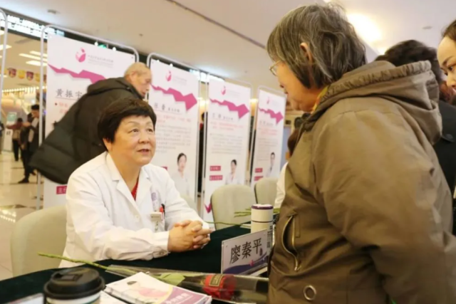 廖秦平(左)现任清华大学附属北京清华长庚医院妇产科主任,图为义诊现场。