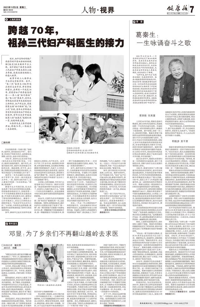 “我们一家三代妇产科大夫,家里经常讨论的话题是‘这个患者怎么诊治’。妇产科事业已与我的亲人、家庭紧密捆绑在一起。母亲是我的榜样,女儿是我的骄傲,我们一同守护着女同胞们的健康。”廖秦平动情地说。