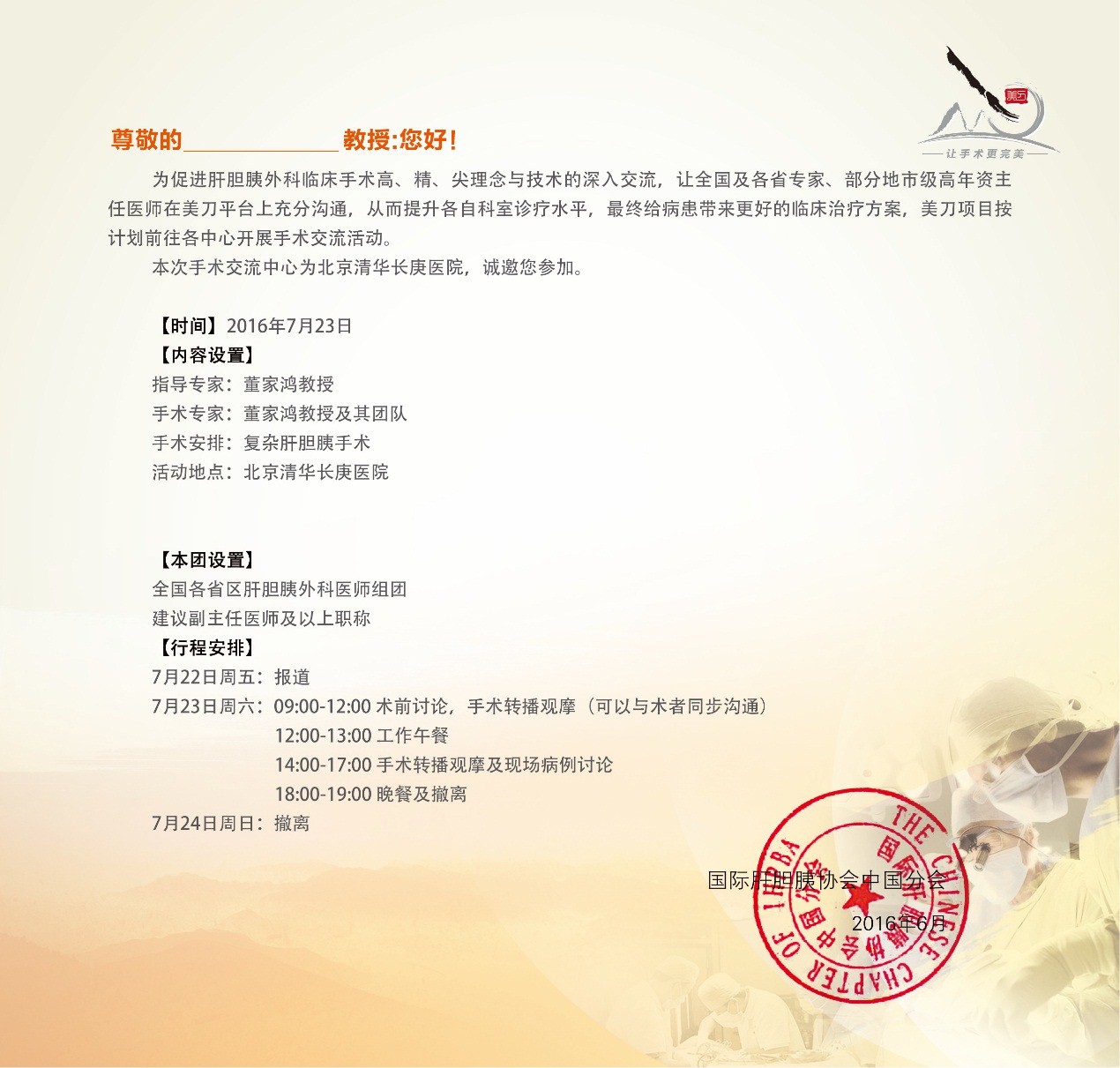 清华长庚医院7月21日电(通讯员 王良)7月23日我院肝胆胰中心将举办美刀手术交流活动暨精准肝脏外科高级学习班。
