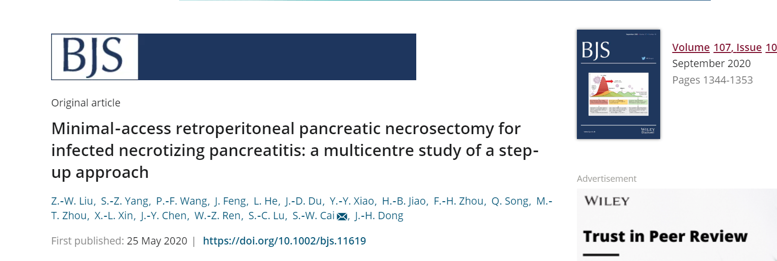 清华大学附属北京清华长庚医院董家鸿院士牵头,携手解放军总医院肝胆胰外科蔡守旺教授,建立了改良经皮肾镜清除胰腺周围坏死组织新方法,显著提高坏死性胰腺炎合并感染的清创效率,明显降低了患者死亡率。近期,相关临床研究成果发表在国际外科领域权威期刊《英国外科》(British Journal of Surgery)。https://bjssjournals.onlinelibrary.wiley.com/doi/10.1002/bjs.11619