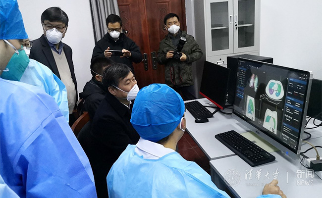 2020年新年伊始的疫情,为中华大地带来了巨大的灾难。为落实国务院联防联控机制“关于开展线上服务进一步加强湖北疫情防控工作的通知”要求,为全力支援湖北开展新型冠状病毒肺炎医疗救治工作,董家鸿老师第一时间奔赴疫区了解抗疫的攻坚难题。2020年2月25日下午,董家鸿老师和清华大学尤政院士合作研发的新型冠状病毒肺炎智能辅助诊断系统正式在武汉大学中南医院完成部署,开始用于病人的诊治。这一系统可同步实现智能化影像诊断、临床分型及定量分析三种功能模块。比起传统的人工阅片,它的效率大大提高,在5-10秒内即可完成疑似病例的胸部CT阅片,并通过经过深度学习训练后的分析系统,给予相关的临床分析,显著提升新冠肺炎诊断效能,为抗击疫情进一步提供了保障。