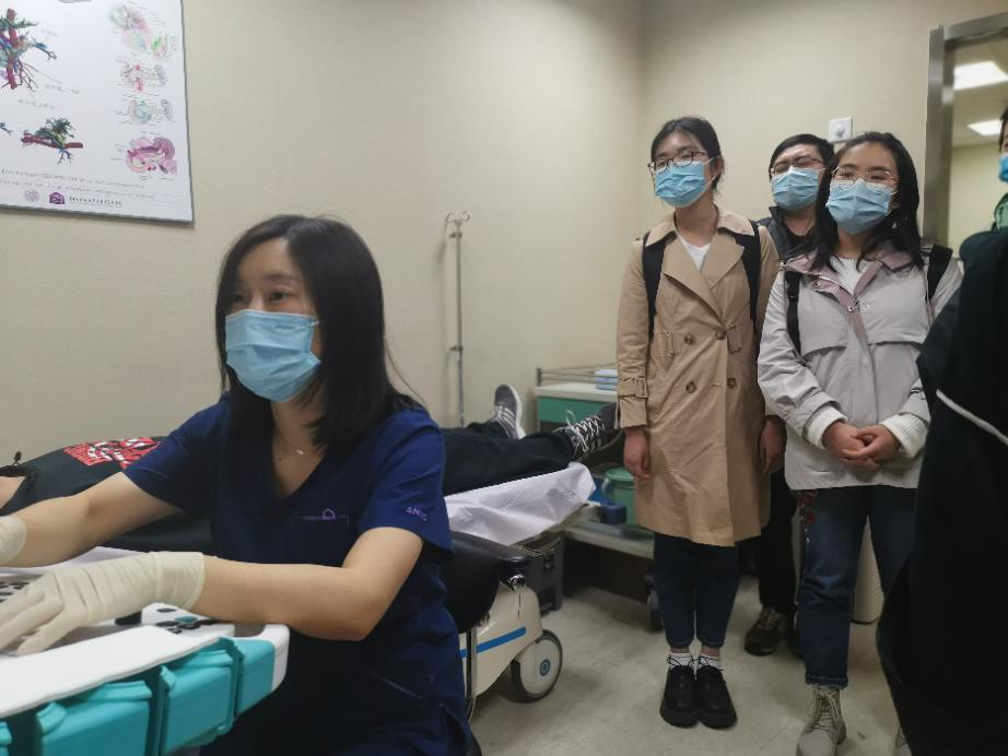 在传统的医学教育模式中,学生只能观看二维平面图形,无法直接学习器官的空间立体解剖结构,如今运用三维重建系统和混合现实技术,可以将器官的虚拟三维图像直观地展示在学生们的眼前,并进行多角度全方位观察、操控,甚至“透视”器官内部结构,激发了学生们的学习热情,纷纷点赞实践课。此外,肝胆胰中心工作人员还为学生们介绍了多种肝脏检查方法;骨科副主任医师赵喆、泌尿外科付猛分别为学生们展示了外科手术中的先进设备和技术。